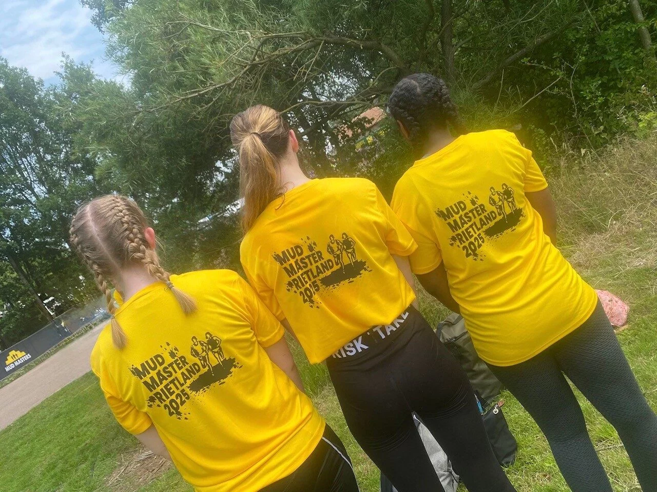 De wekenlange voorbereidingen tijdens de crossfit lessen, bootcamp en zwemmen waren niet voor niets. De jaarlijkse sportdag was dit keer de Mudmasters. Eerst een goedgevulde lunch en een energiedrankje op school, voordat iedereen op de fiets naar het Haarlemmermeerse bos ging. Het was héél warm dus kwamen ze al met rode hoofden aan op het veld. Tijd voor nog een drankje. De stemming werd er met opzwepende muziek tijdens de warming-up goed ingebracht. Toen klonk het startsignaal en gingen alle leerlingen in knalgele Mud Master Rietland 2025 shirts van start aan het parcours van 6 kilometer vol uitdagingen, teamwork, modder en water maar vooral om plezier te hebben.